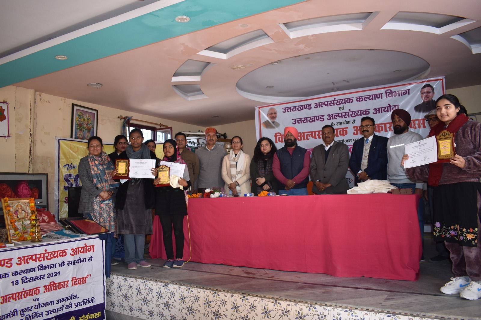 स्थान डोईवाला मेें साफ्टोनिक्स सोशल वेलफेयर सोसाइटी के सभागार में विश्व अल्पसंख्यक अधिकार दिवस का आयोजन किया गया। जिसमेें मुख्य अतिथि के रूप में श्री राजेन्द्र कुमार निदेशक, अल्पसंख्यक कल्याण, उत्तराखण्ड के सानिध्य में जन-जागरूकता कार्यक्रम किया गया।